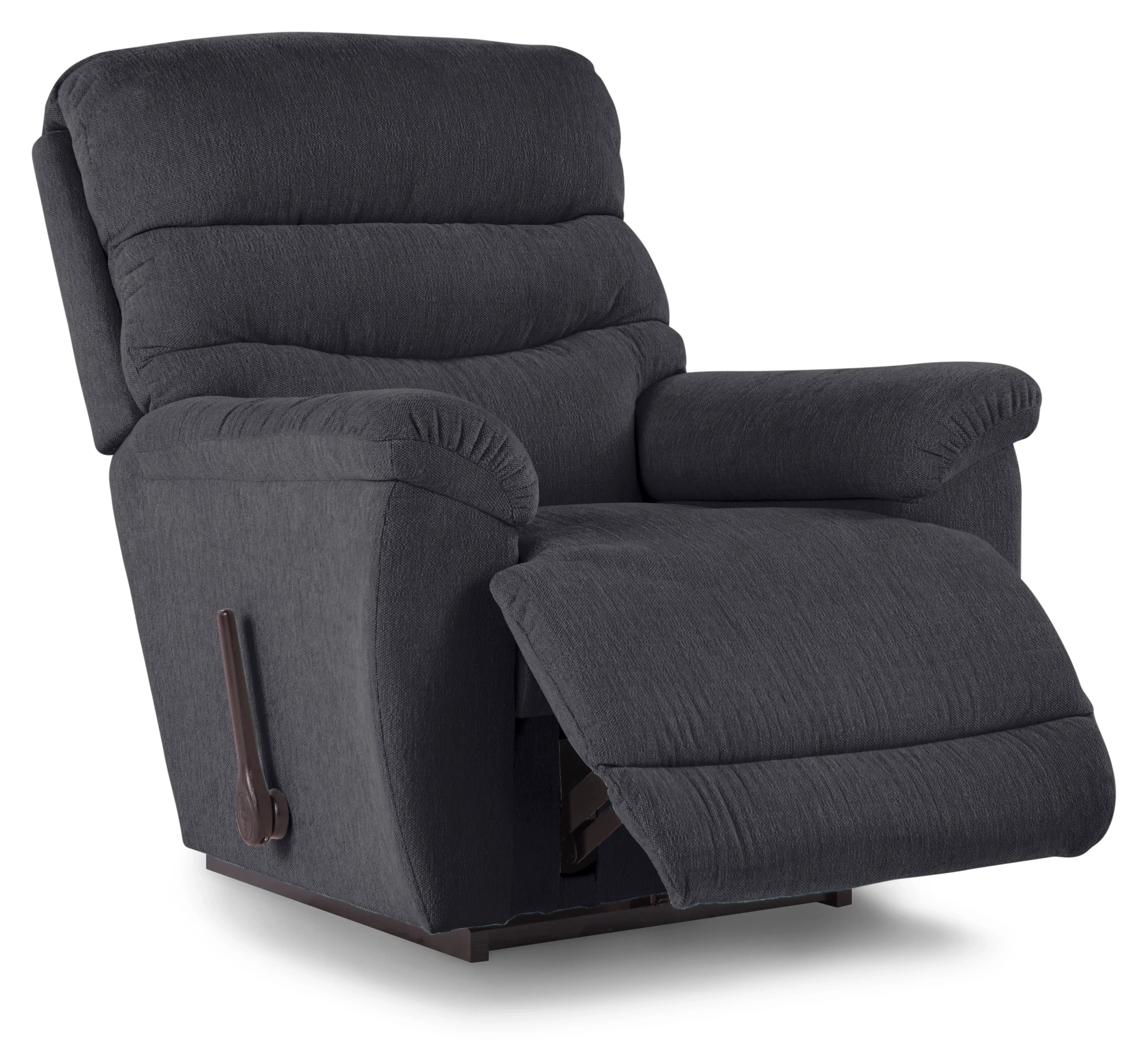 "Basic-yet-classic" is the perfect description for our Joshua Rocking Recliner. Its clean lines and exceptional comfort make it an instant family favorite. Joshua features sloping padded arms, a tiered back and an ultra-plush, one-piece chaise seat and legrest that create a continuous zone of comfort in the reclining position. Simply use the convenient handle on the outside arm to raise the legrest for reading, relaxing or watching TV. And when you're not reclining, it's a relaxing rocker with a smooth, graceful motion. Make it yours with your choice of fabrics and other available upgrades.