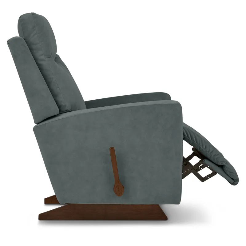 For those who want more space with a clean look, the Kodie Rocking Recliner has sleek casual comfort in a grand scale. Exposed wings, a deep chaise seat and bold track arms add cool style to a cozy back. Recline in XL luxury or just rock and relax!