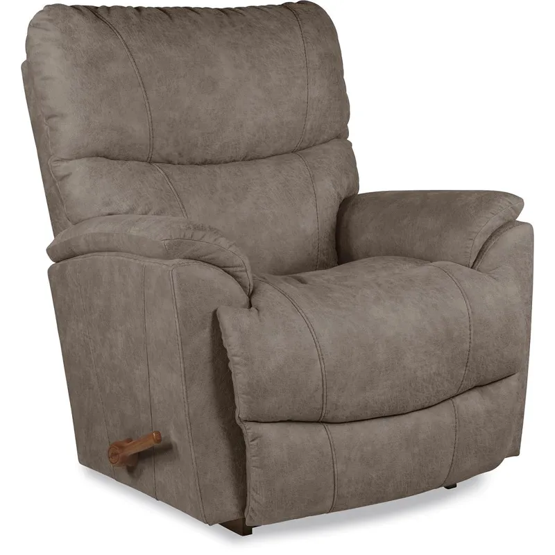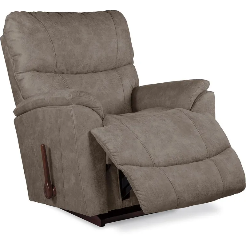 An updated silhouette, complete with slightly flared arms and a sleek tall back give Trouper a look that's fresh. It's also one comfortable rocking recliner. A sculpted bucket seat cradles you in softness while providing extra head and lumbar support. A convenient handle allows you to smoothly and easily adjust the legrest to your preferred position, or rock away the stress of the day. When it comes to comfort, Trouper always comes through.
