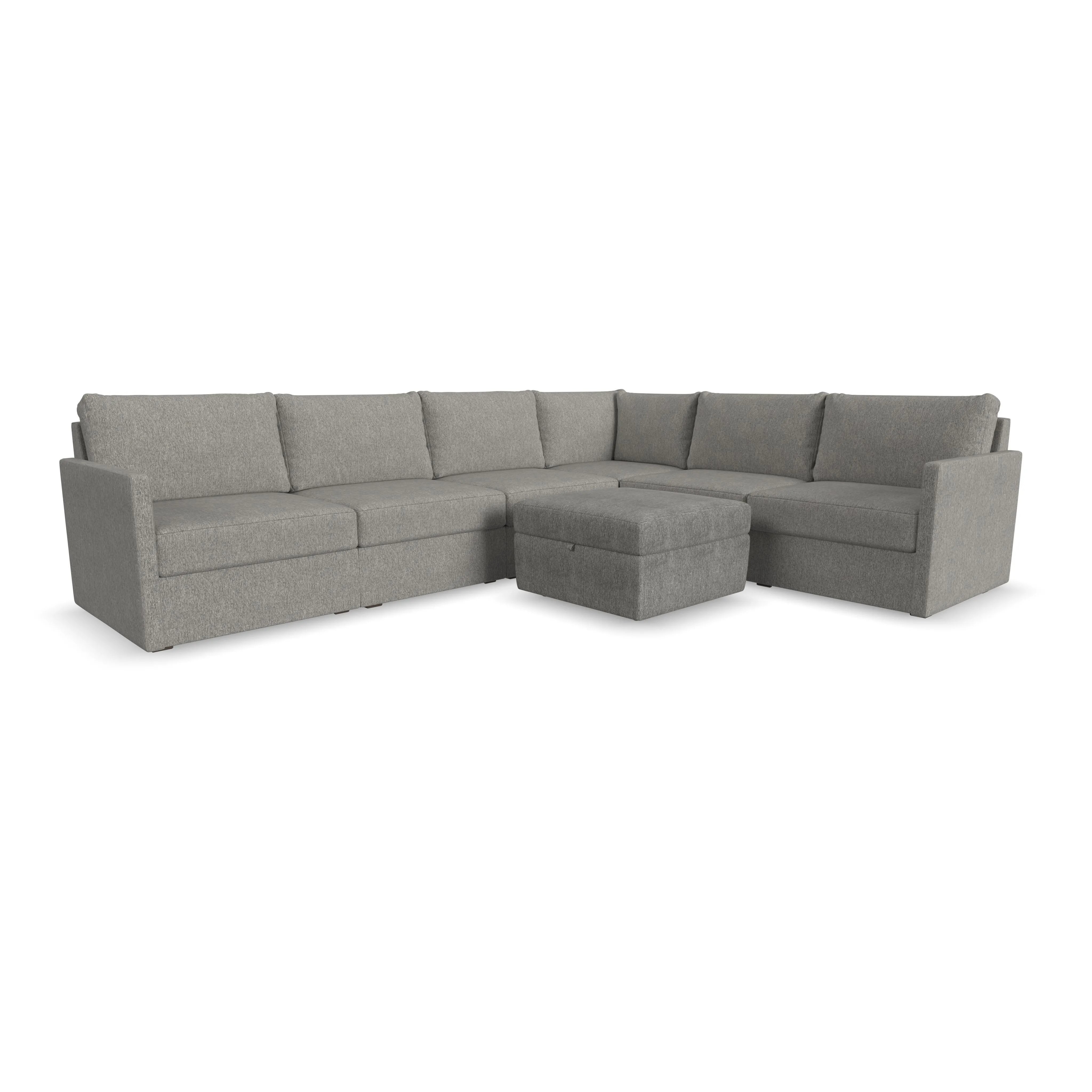 Designed for a lifetime of flexibility, the Flex 6-seat sectional with storage ottoman delivers reconfigurable relaxation for small and large groups. Use the ottoman as a standalone piece or combine with other the other modular components to create the perfect seating arrangement for your space. Built with Blue Steel Spring technology and sustainable, stain-resistant performance fabric, Flex seating provides deep-seated, blissful comfort and long-lasting livability. And assembly is a breeze with a patented J-Bracket™ “no-tool” method that takes minutes, rather than hours.