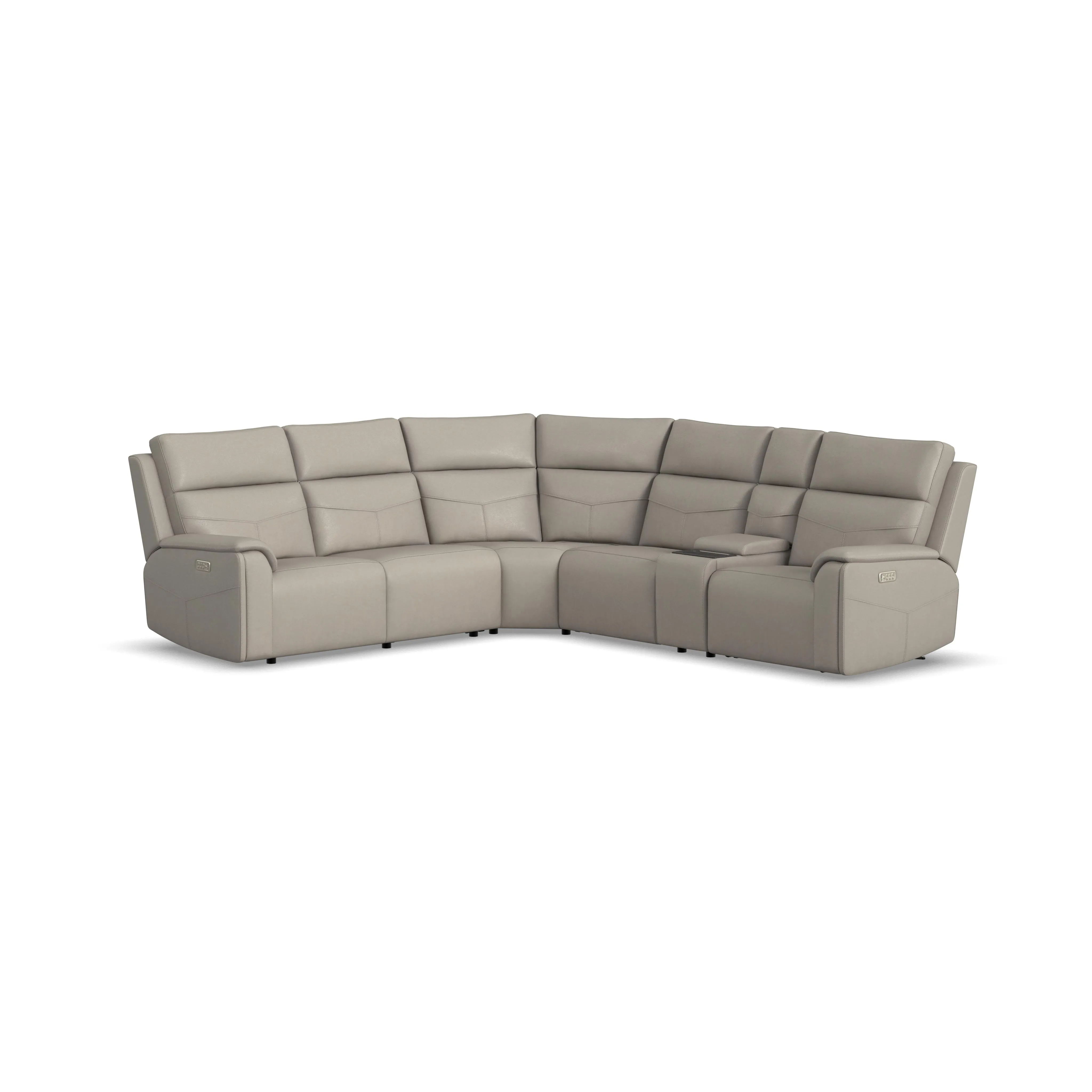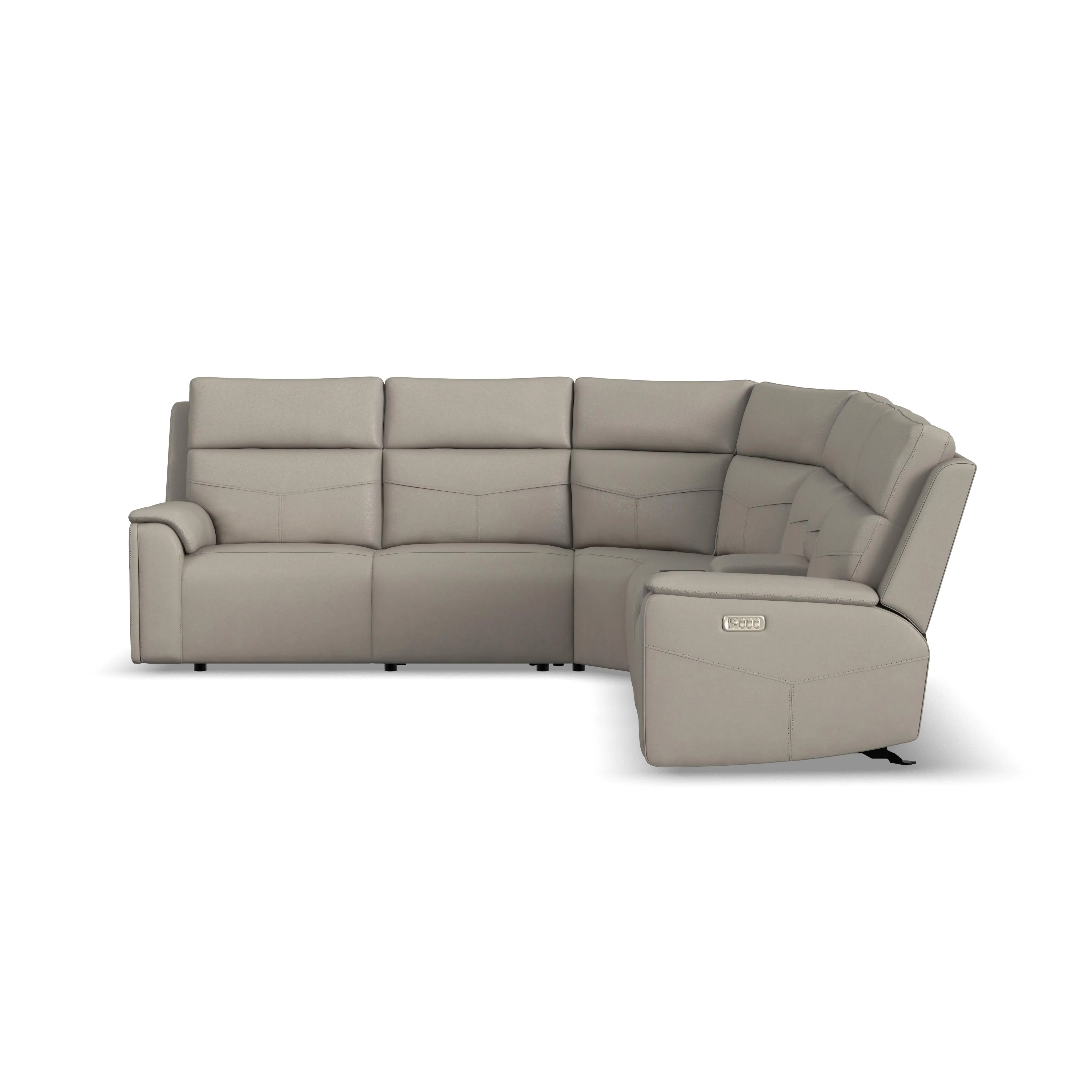 A versatile showstopper, the Vernon power reclining sectional has everything you need for ultimate comfort. Its sleek, modernized silhouette is upholstered in a family-friendly, leather-like fabric with CloudLux™ down alternative seat toppers and headrests that will put you on cloud nine. Customizable Zero Gravity recline, and adjustable heat and massage bring the best in relaxation, while the center console contains storage, cupholders, and a charging tray to keep everything you need within reach. Kick back and stand out, all with Vernon.