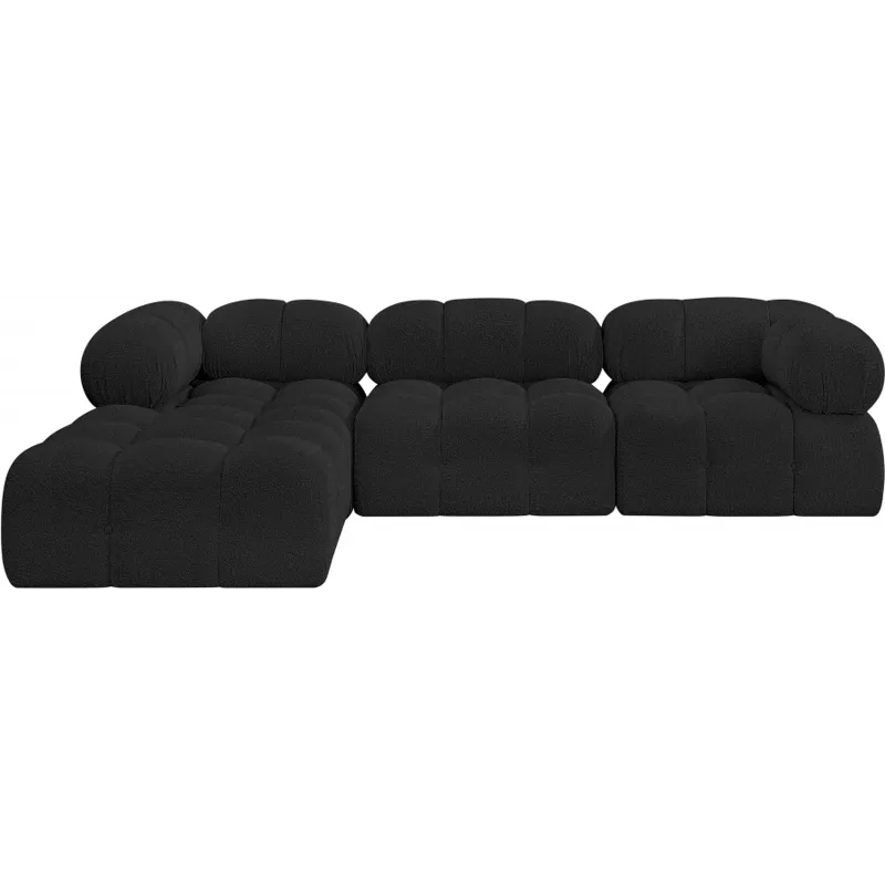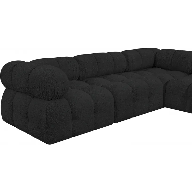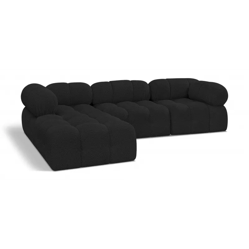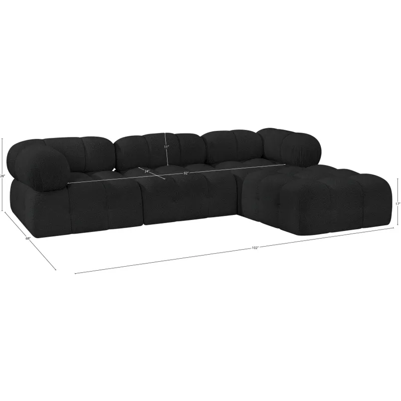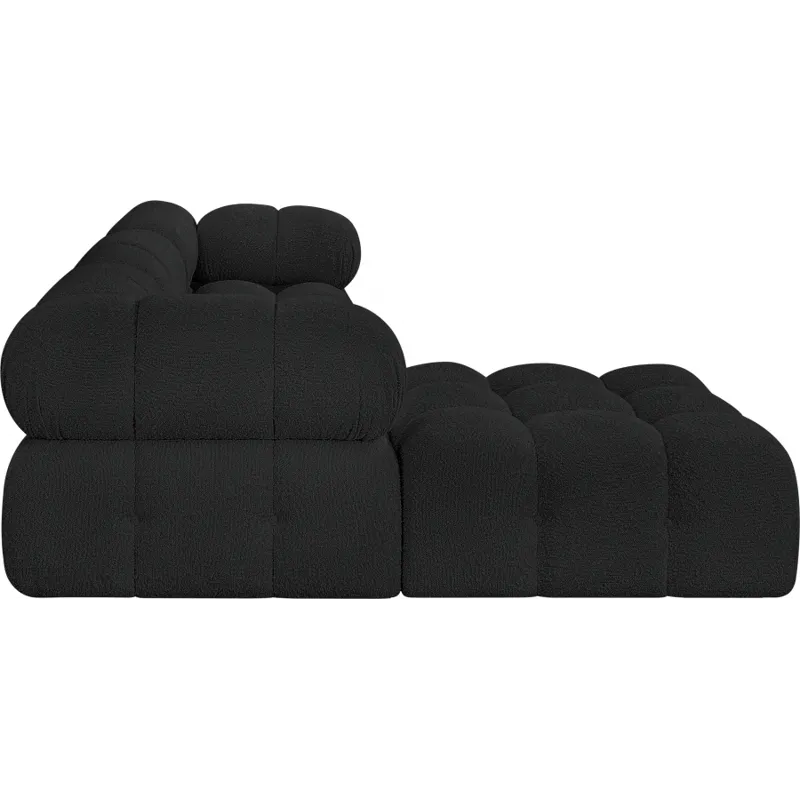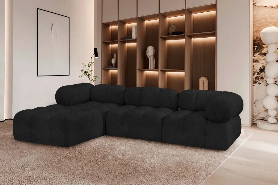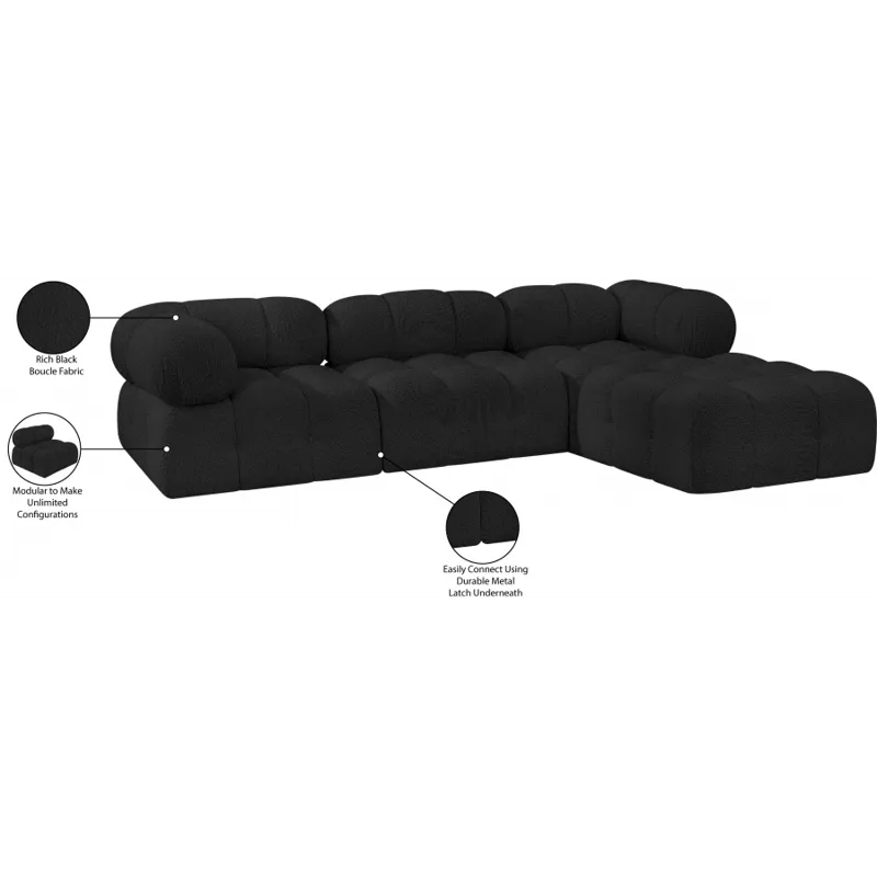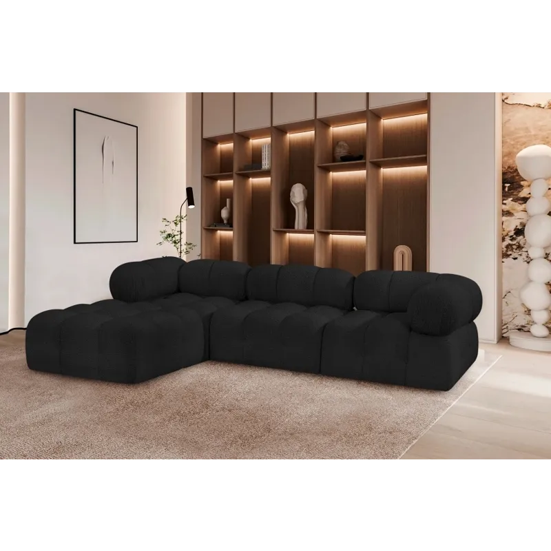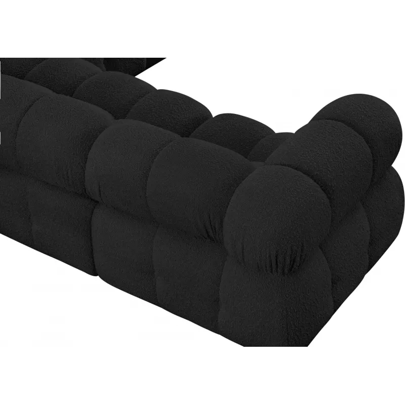 Introduce a touch of modern sophistication to your living area with the exquisite Ames Boucle Fabric Sectional. With plush black boucle fabric and unique design, it will elevate the visual appeal of your living space. This elegant and captivating sectional can be mixed and matched with other pieces from the collection to create an endless array of stunning looks. So, get ready to transform your living area into an inviting and stylish haven with the Ames Boucle Fabric Sectional.