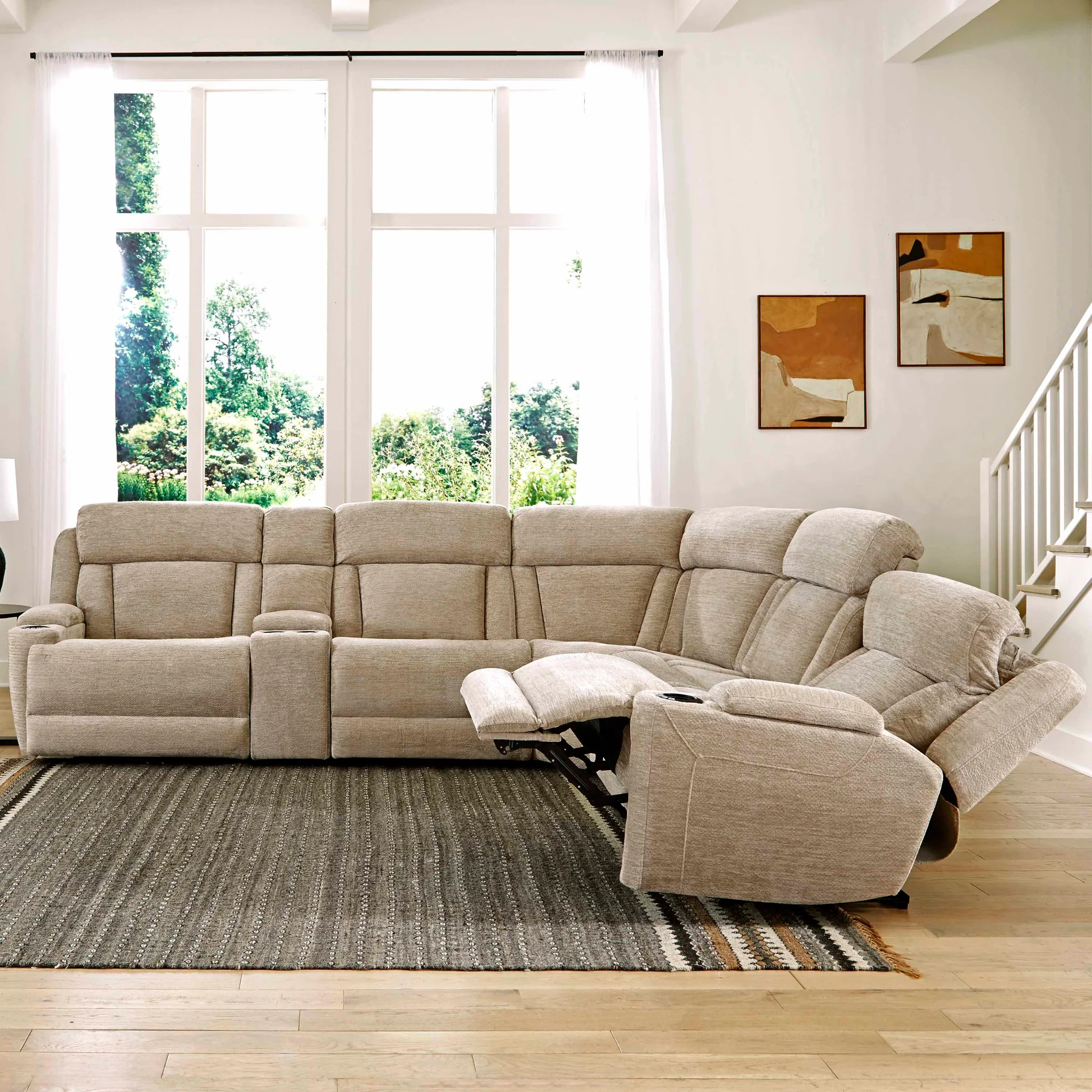 For maximum coziness, Dalton is unsurpassed. Its generously scaled design is brought to life in a plush, textural high performance chenille cover while it delivers power motion footrest and headrest functionality. Dalton's wide arms feature integrated cupholders and its overstuffed headrest and comfort channels create an exceptional comfort experience. Optional armless chair features a drop-down table with power center, cupholders and wireless charger.