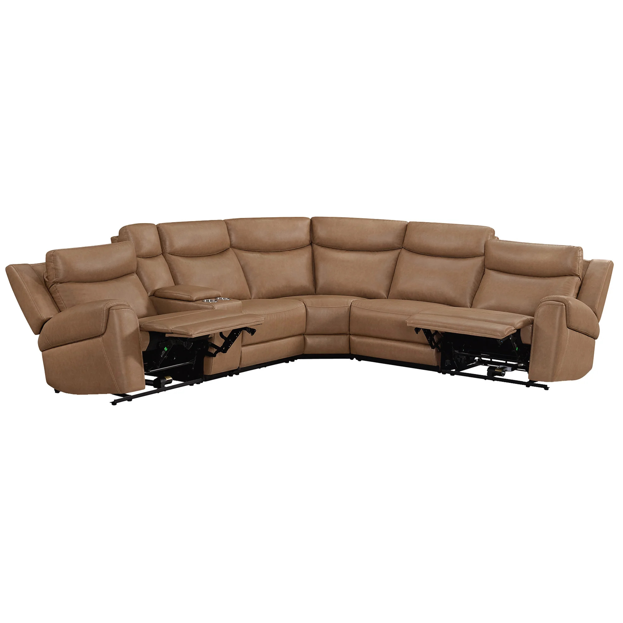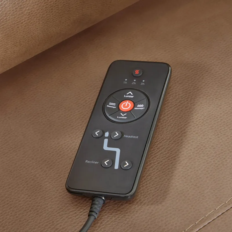 - Remote controlled power recline, heat, massage, lumbar, and "Home" button to bring all positions back to upright seating on both end recliners