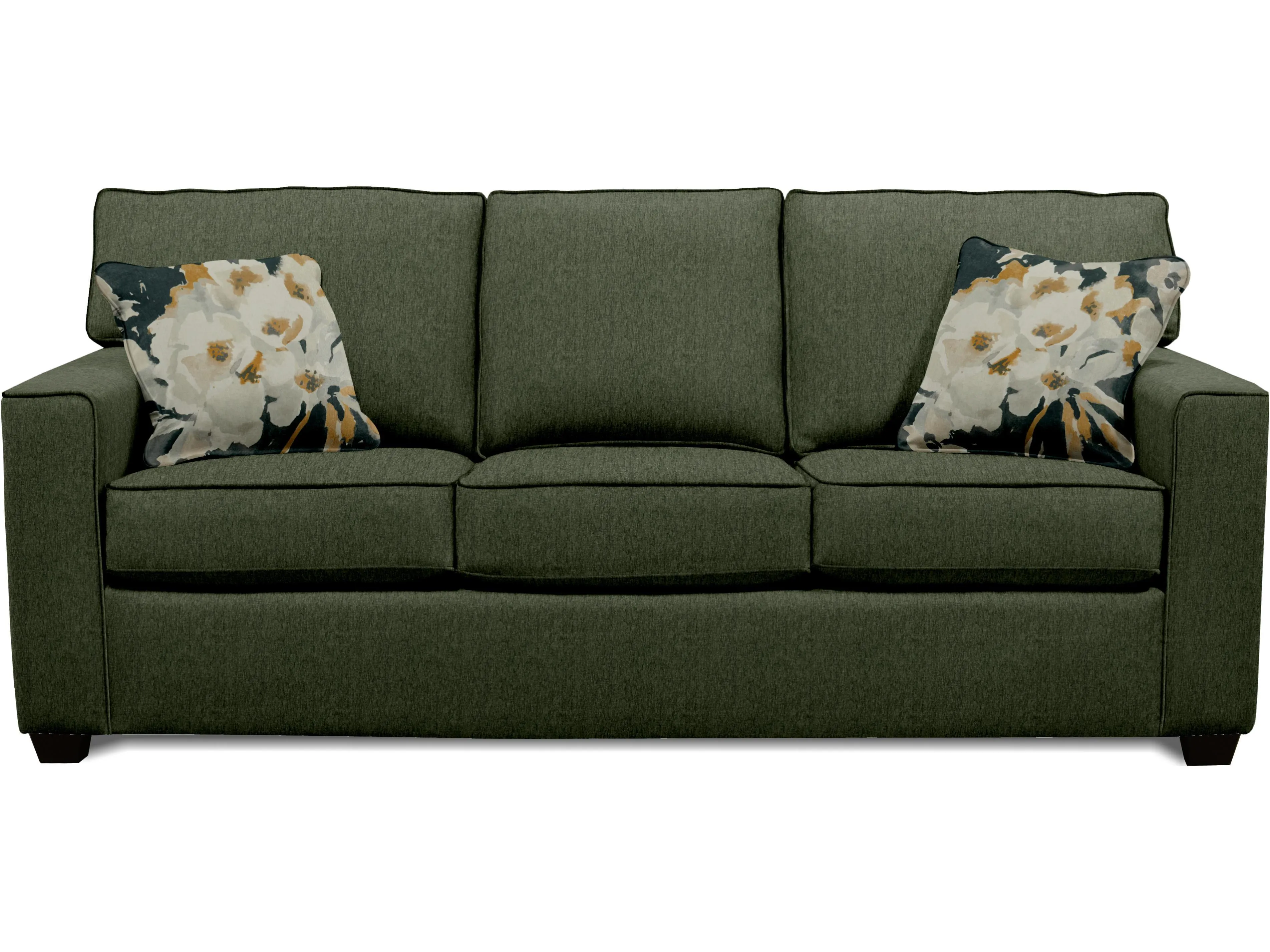 The Jay collection boasts simple design yet offers supreme comfort. This track arm silhouette boasts a matching welt and pyramid leg. The group includes a sofa, loveseat, chair, ottoman, and queen sleeper.