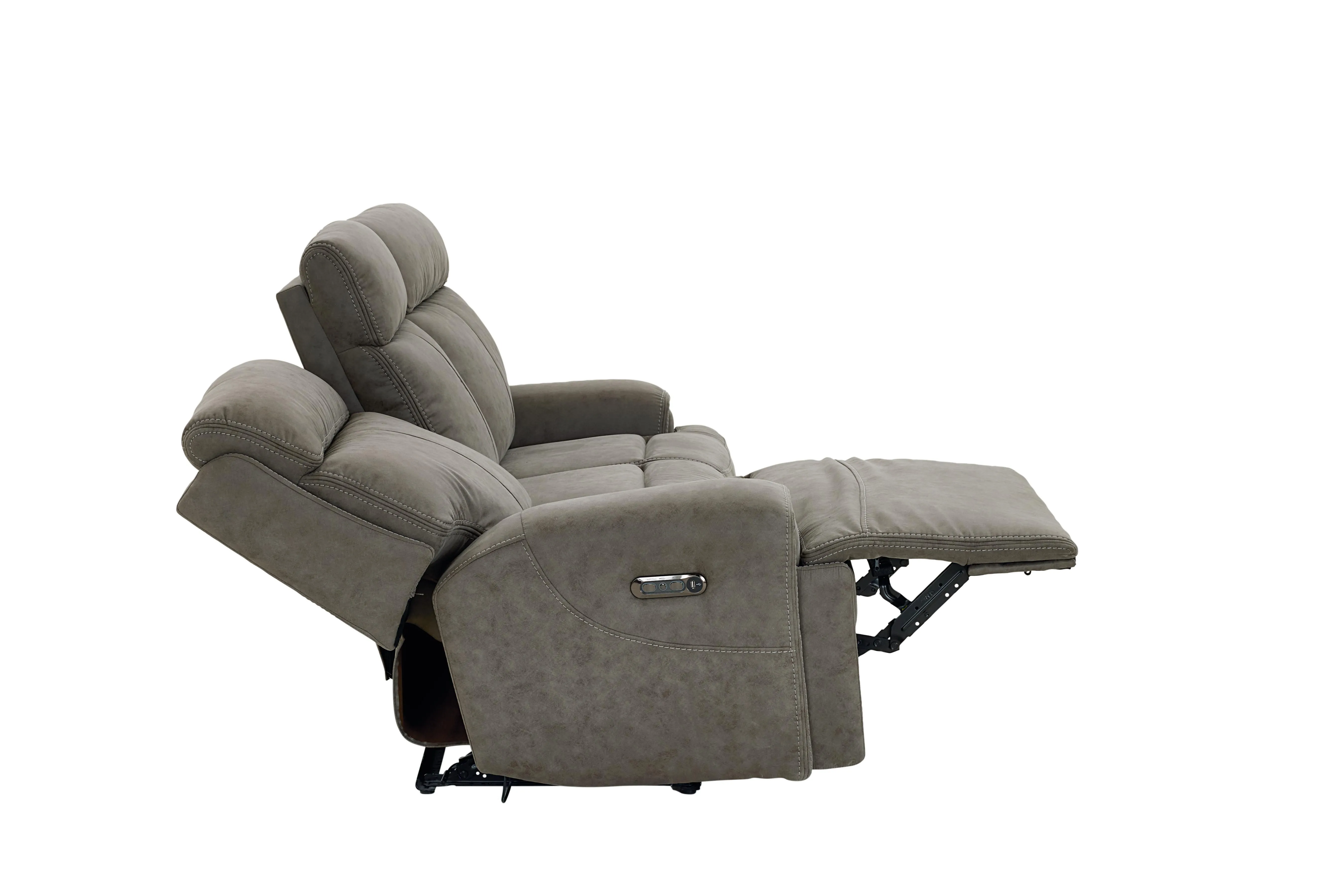 Nathan features generous scale, with a pad over track arm for additional comfort. The soft microfiber fabric is available in Java and Shadow. Nathan features a power wall-hugger mechanism with a power adjustable headrest. With USB-A and USB-C charging ports built into the controls, Nathan keeps you powered up and relieves your stress with unmatched comfort.