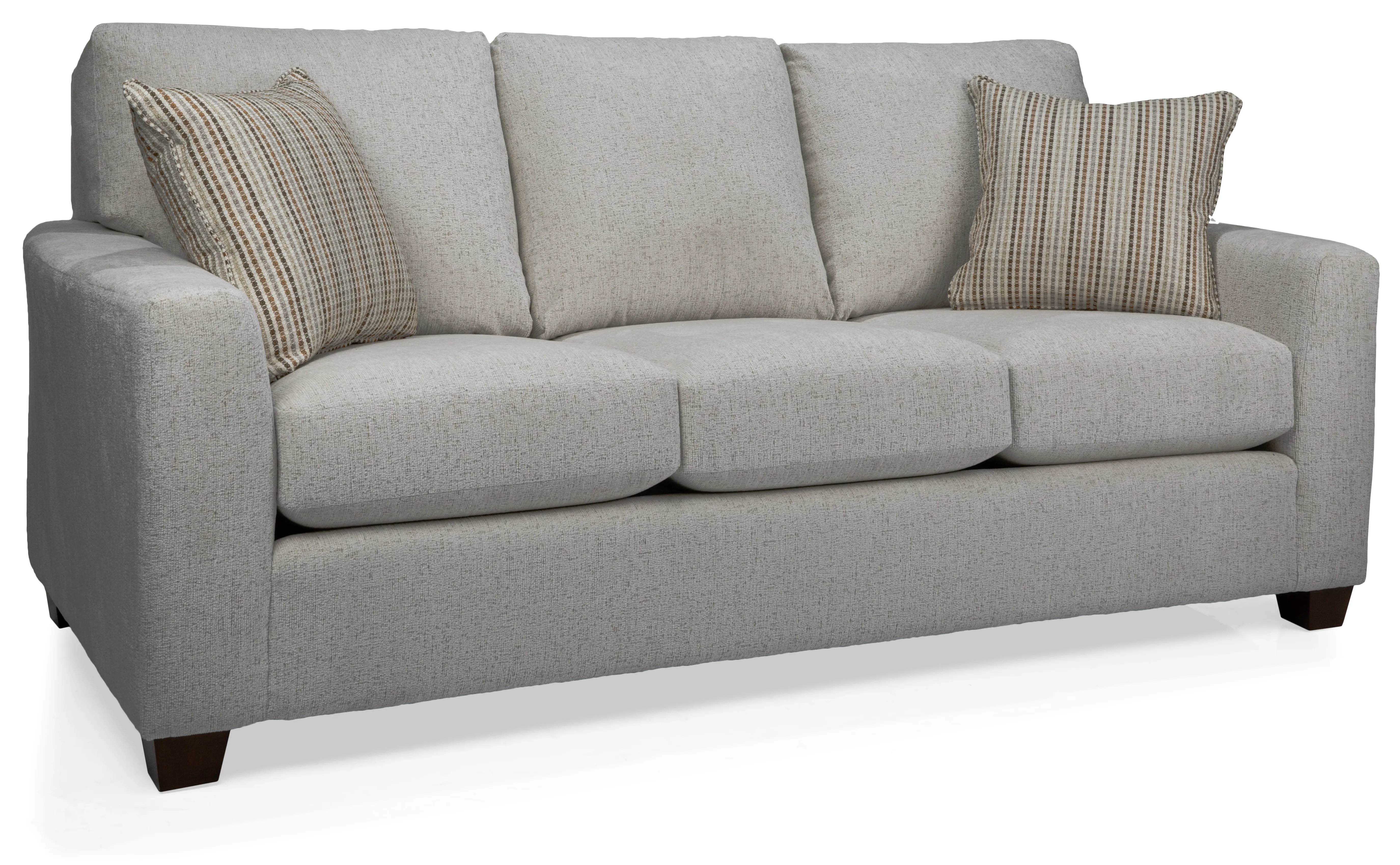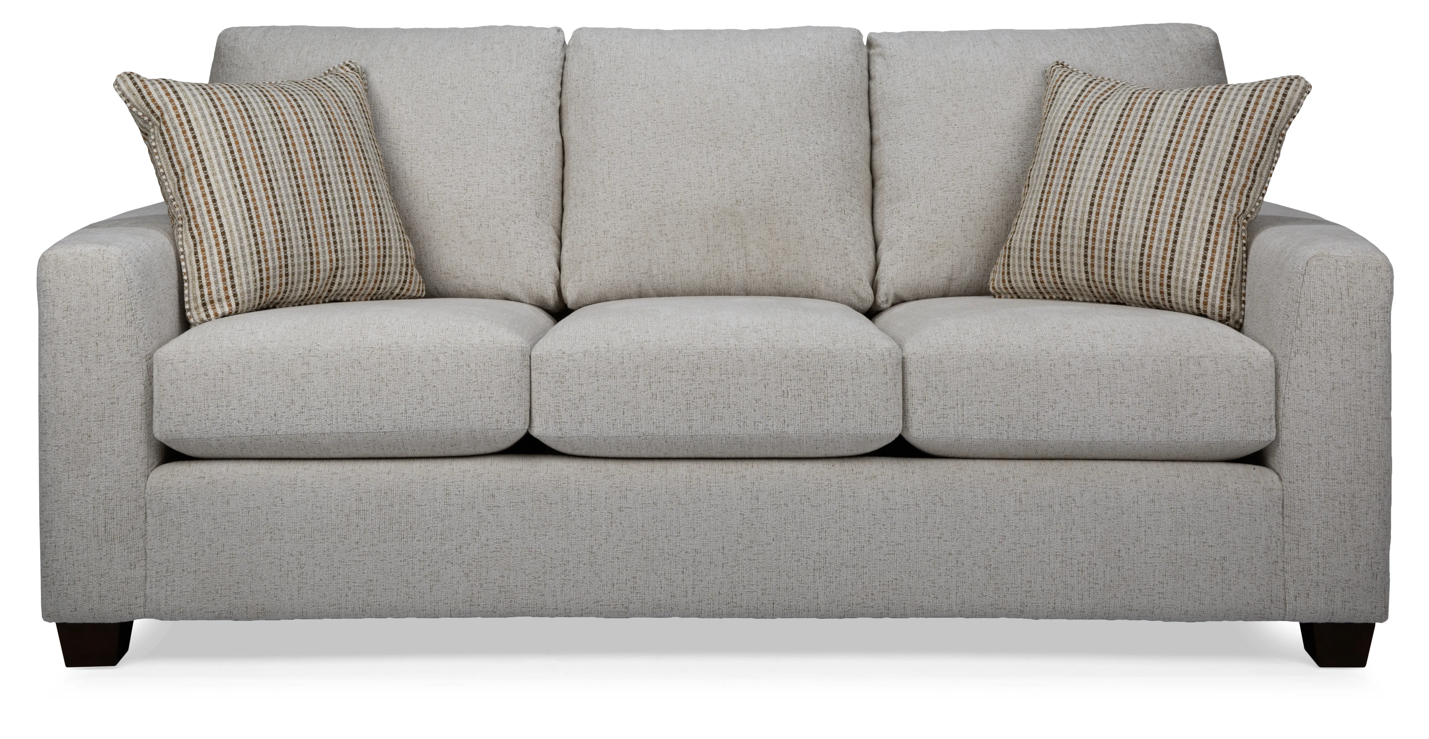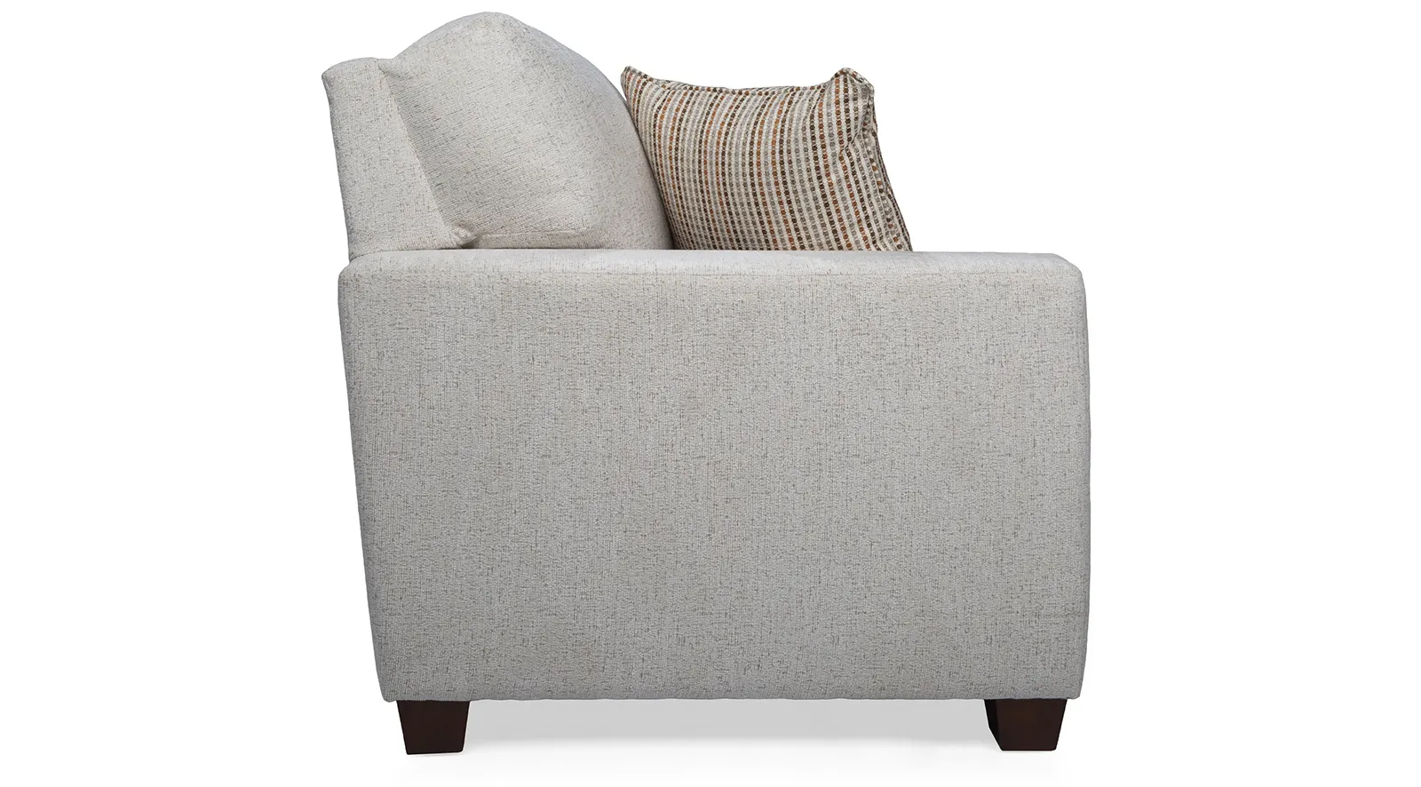 Deep seats and a semi-attached back are features of this sofa set. Available as a chair, loveseat, and sofa. Expertly crafted by Canadian upholstery artisans.