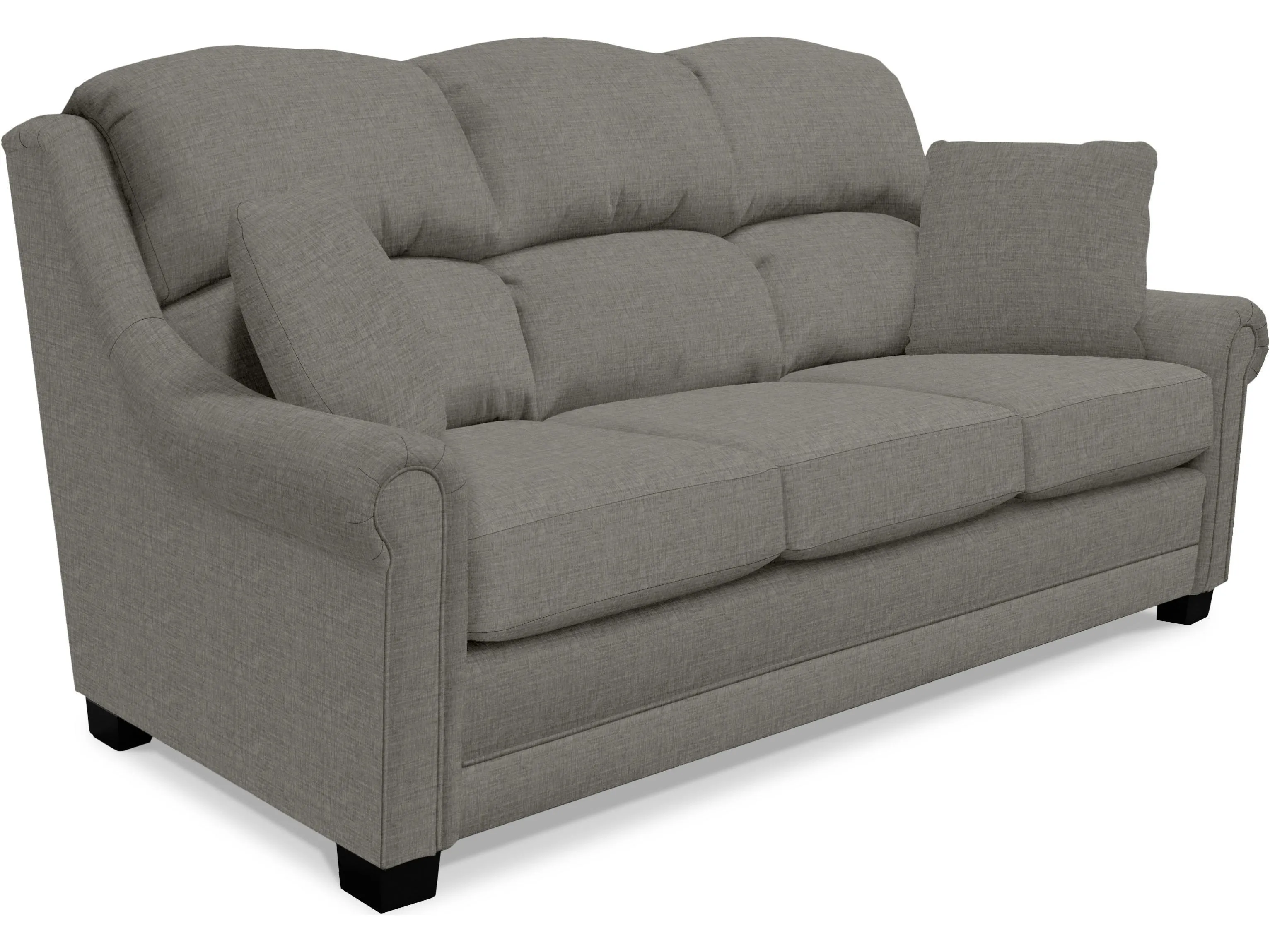 Construction Back: Sinuous wire, attached, poly fiber fill, zipper access. Seat: Sinuous wire, block foam with poly fiber wrap, ventilated, reversible. Legs: 4'' x 3.63'' x 2.75'' wood pyramid, screw-in. Pillows: 2 x 20'' fiber fill. Optional upgrades: Frame Coil, Coil Cushion, feather blend pillows.