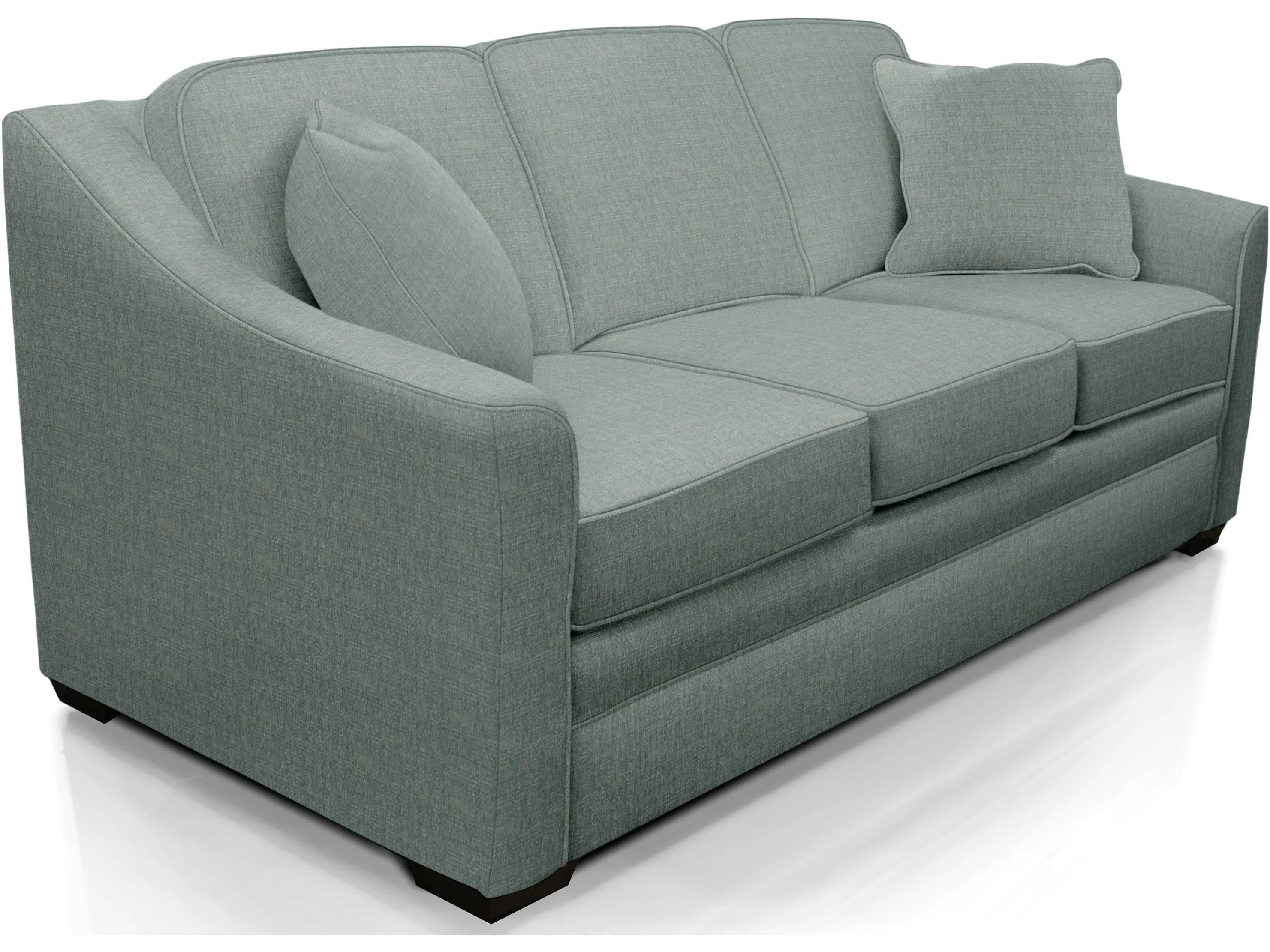 Construction Back: Sinuous wire, semi-attached, block foam with poly fiber wrap, zipper access. Seat: Sinuous wire, block foam with poly fiber wrap, ventilated, reversible. Legs: 6''x5''x1.75'' wood taper, screw-in. Pillows: 2 x 20'' fiber fill. Optional Upgrades: Frame Coil, Coil Cushion, feather blend pillows.