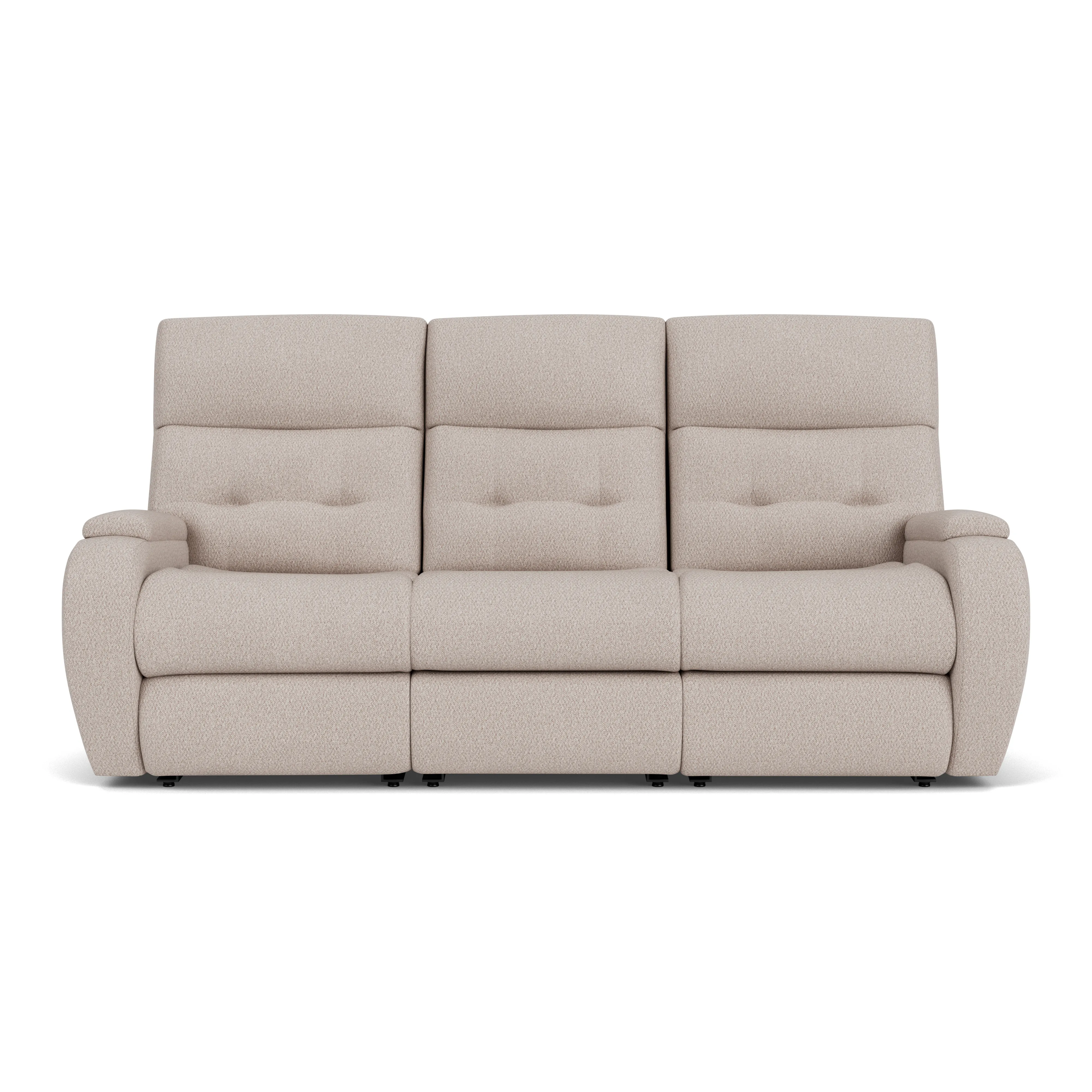 Envelope yourself in the generous and weightless comfort of the Strait Power Sofa with Power Headrests. Dual power allows you and your family to adjust the recline and headrests independently, for the ideal position. The zero-gravity feature ensures an even distribution of weight, to limit the strain on your body. Built to accommodate a wide range of body types, the high back provides ample space to relax. While rich details like biscuit tufting and padded arms provide decorative flair. A USB port, with zero-draw technology, gives you peace of mind while charging devices. Built with our patented Blue Steel Spring, Strait ensures flexibility and support for years to come. With over a hundred fabrics to choose from, Strait can fit in perfectly with existing decor.