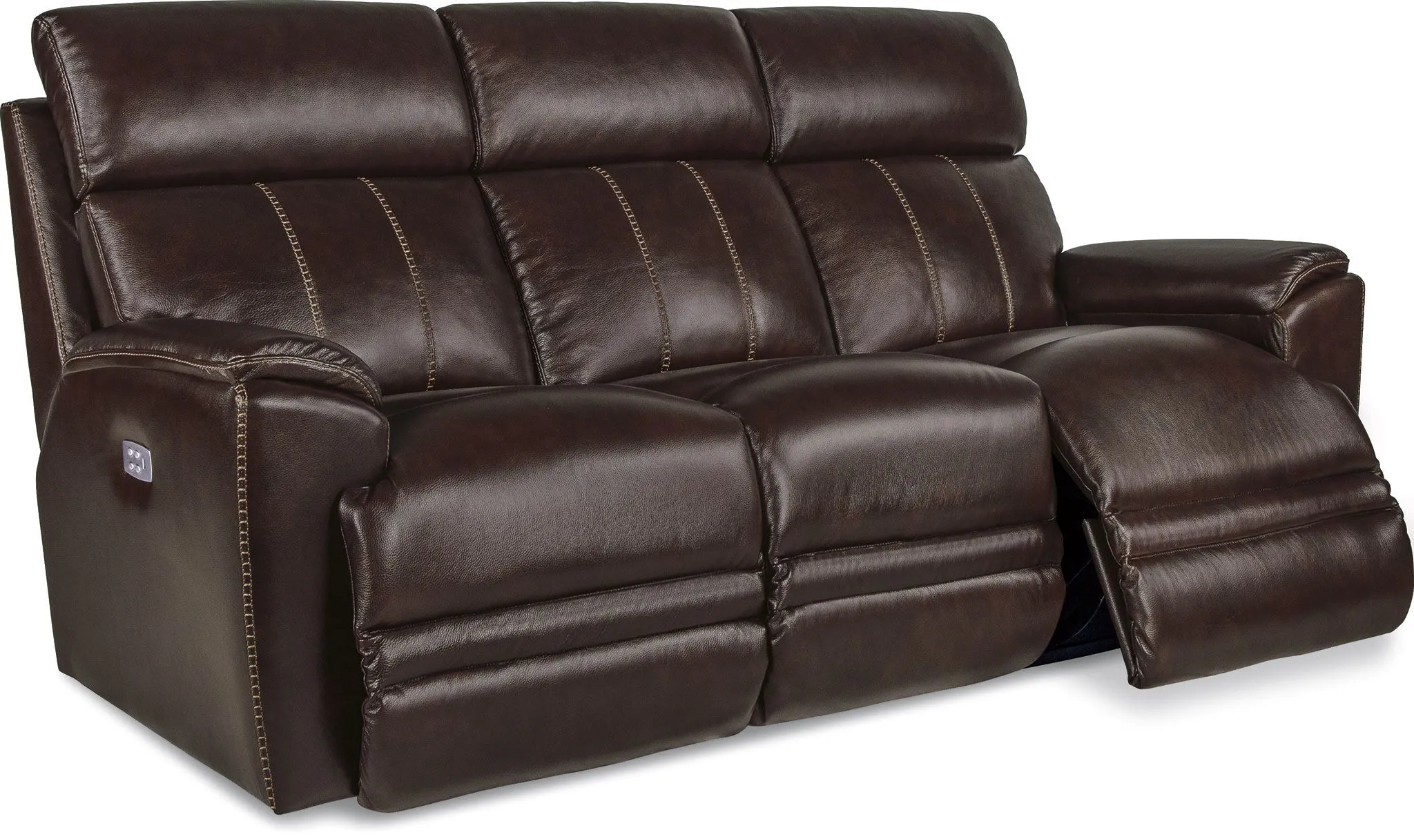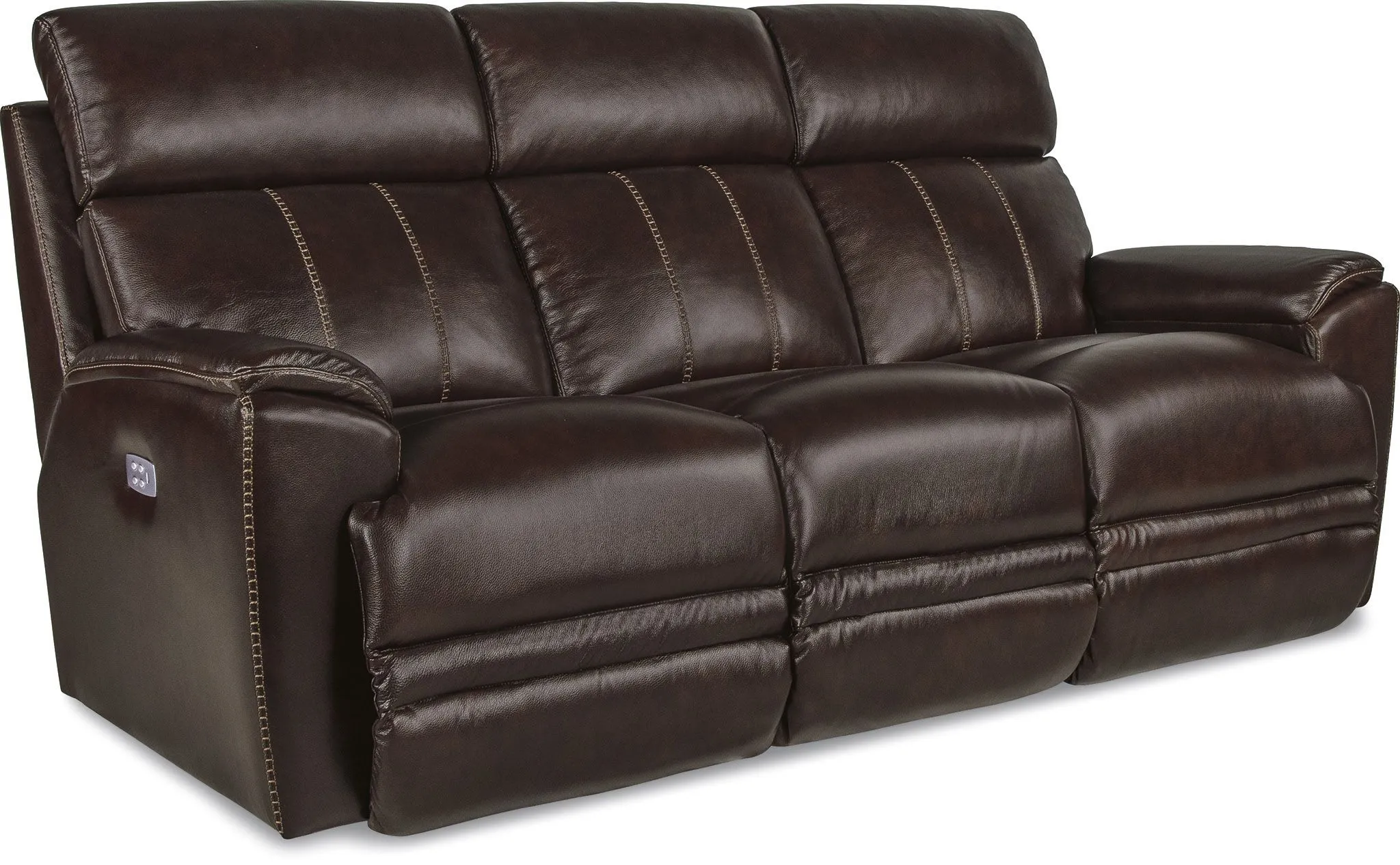 When it comes to comfort, Talladega puts everyone in the driver's seat. Both left and right arm seats recline at the touch of a button as powered backs and chaise legrests provide individualized comfort. Independently adjust the power-tilt headrest for customized support of your head, and neck, and keep your favorite devices charged up with dual-sided USB ports. Our Go Cordless battery pack upgrade lets you enjoy Talladega's power features without an electrical outlet. Sculpted seats, sleek padded arms and exposed wings give Talladega a modern edge, while racing stripe topstitching on the seatbacks add detail. Upgrade your look with Harmony Leather featuring with decorative heavy-gauge ladder stitching.