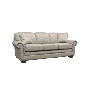 Turn any room into a stylish and functional guest room with the Mackenzie Queen Sleep Sofa. Timeless and on-trend, it features a sophisticated look that blends easily with your existing pieces. Its rolled, pleated arms, foam back and ComfortCore® cushions deliver just the right amount of comfort and support for a short or a long sit. Decorative wood legs add a touch of tradition to complete the look. And, overnight guests will love the Queen size Supreme ComfortTM quilted innerspring mattress that measures 5.5" thick. Make it yours with your choice of fabrics and other available upgrades. Includes two 20" accent pillows. A matching ottoman is available separately.