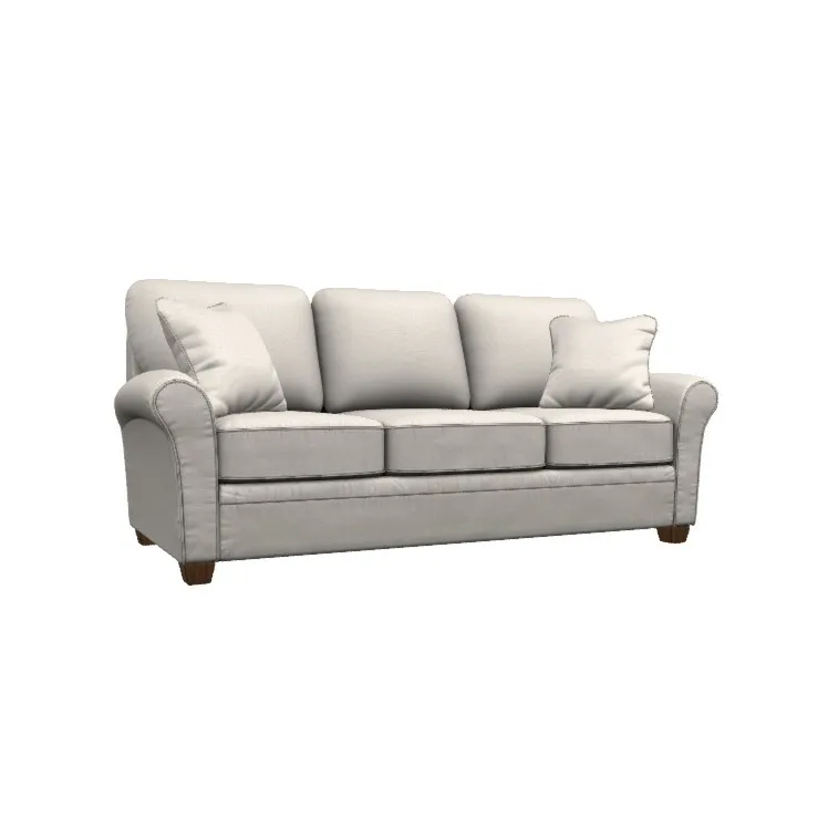 Our Natalie Queen Sleep Sofa is an easygoing blend of comfort and style. Mid-scale in size, Natalie features flared rolled arms, decorative wood legs and welt trim on the arm posts, for a transitional style that blends easily with a wide range of looks, from classic to the contemporary. Patented ComfortCore® cushions provide optimum support for a long or short sit. And, overnight guests will love the Queen size Supreme ComfortTM quilted innerspring mattress that measures 5.5" thick. Make it yours with your choice of fabrics and other available upgrades. Includes two 18" accent pillows.