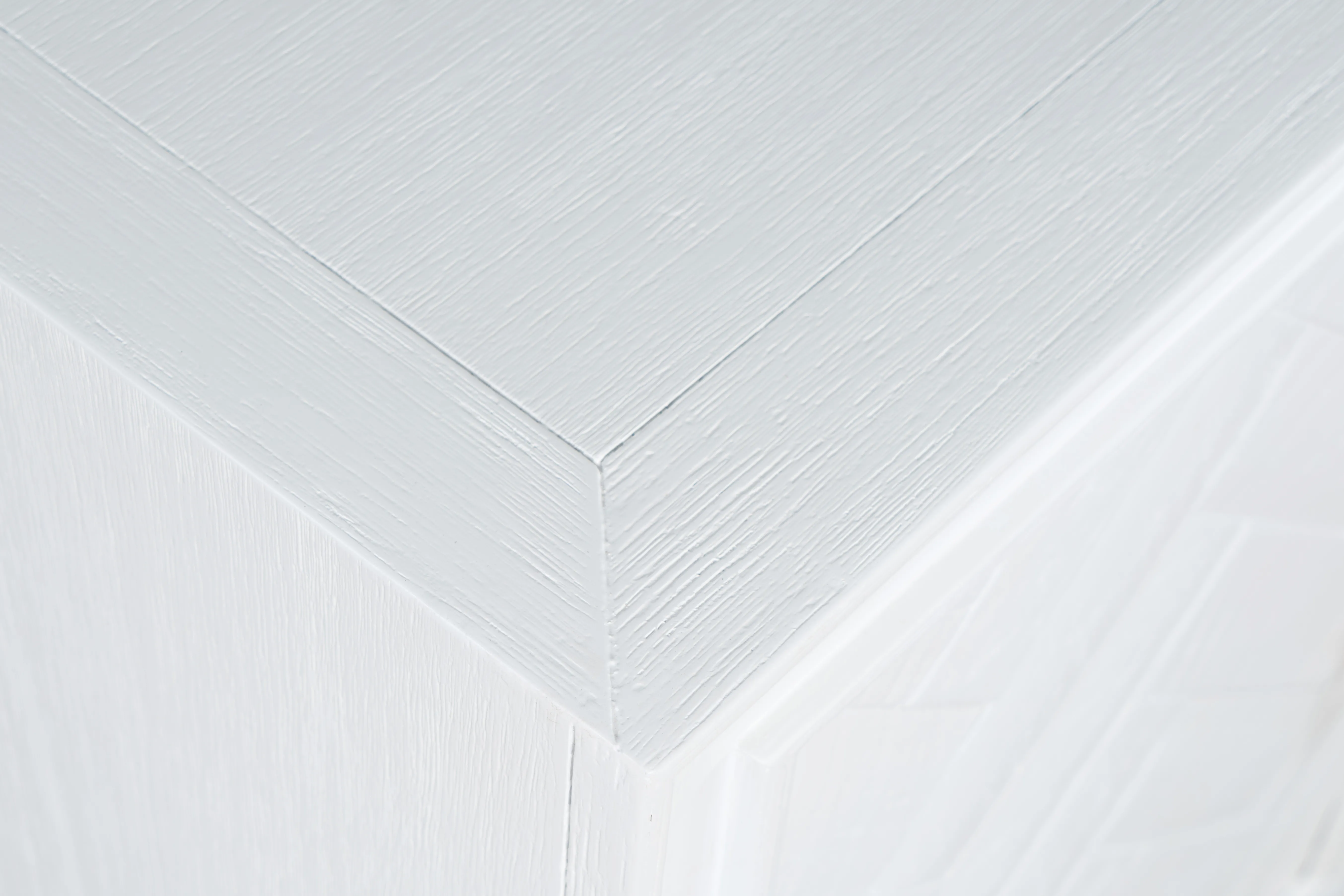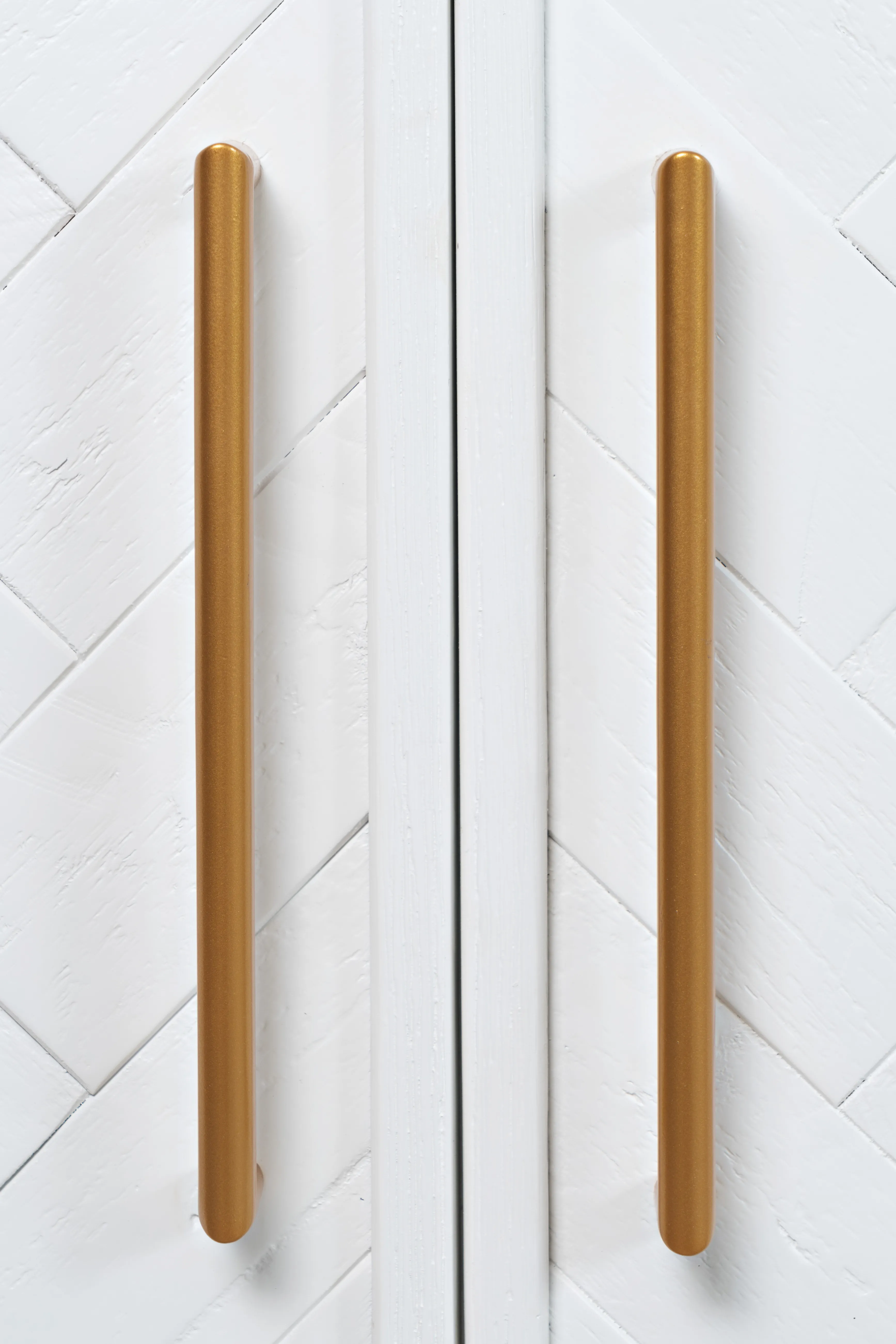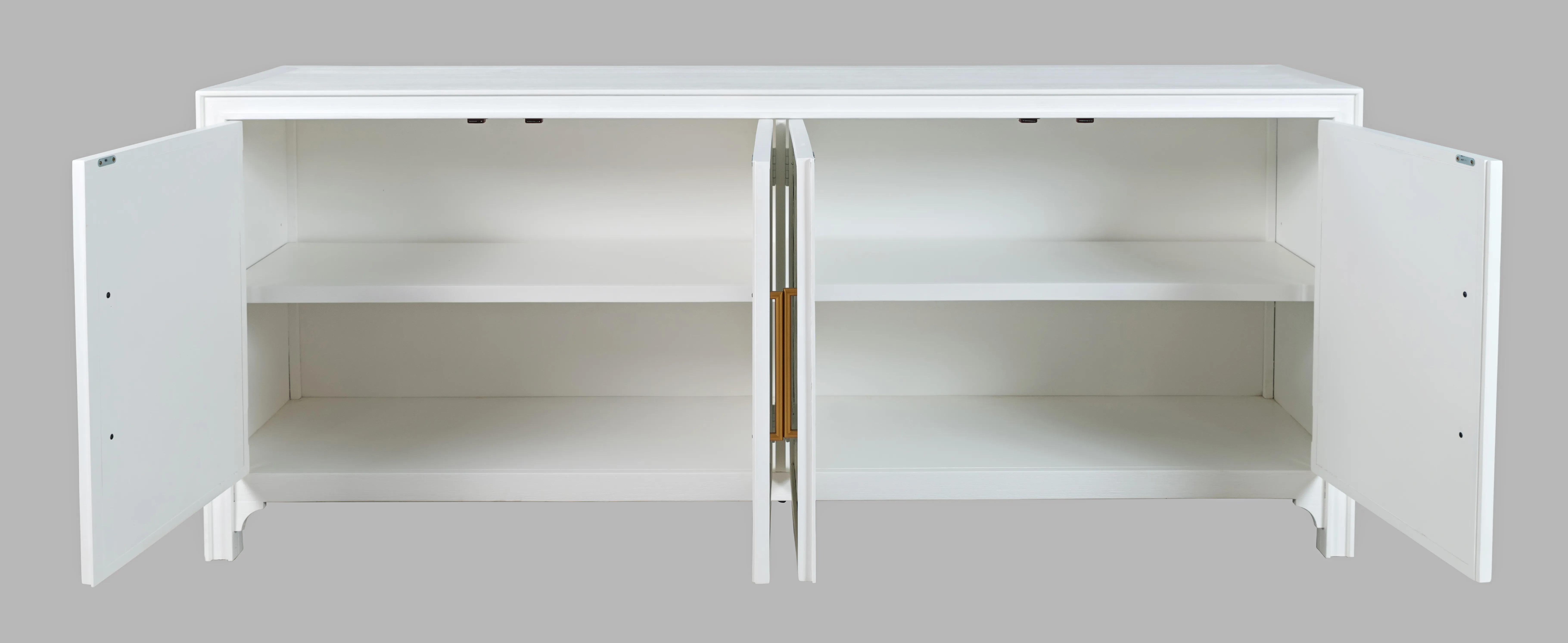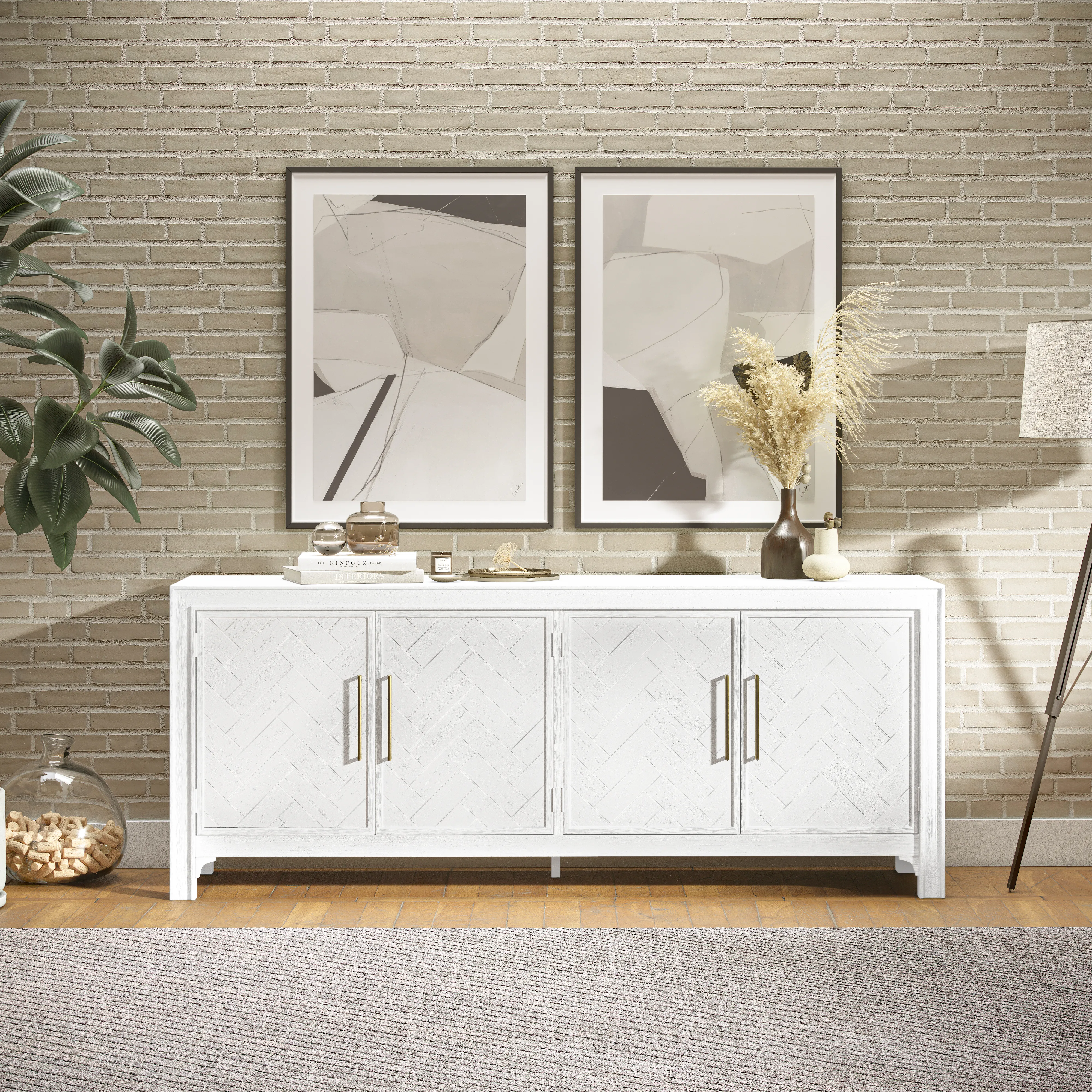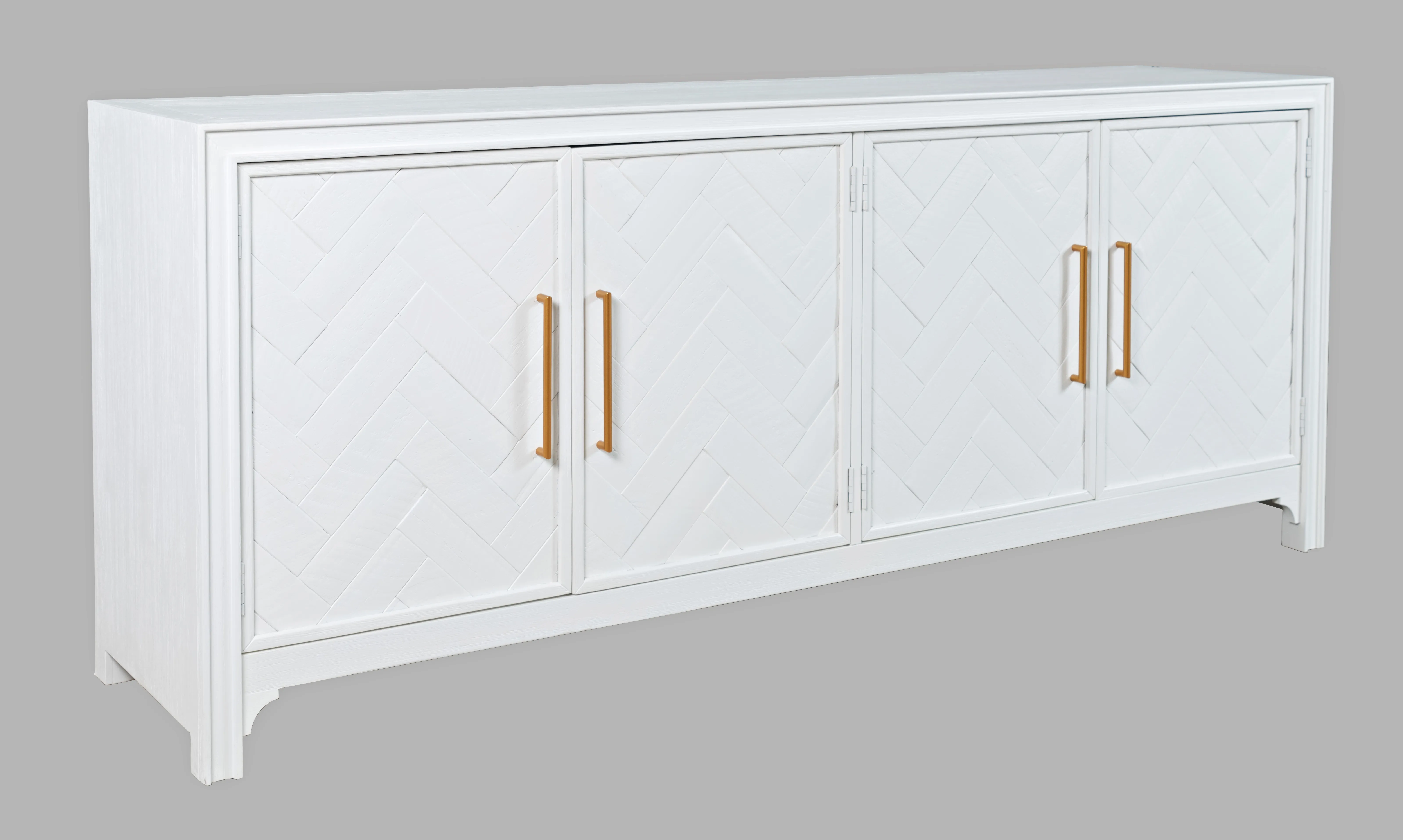 Skillfully crafted with exceptional Mid-Century Modern details, the Gramercy Four-Door Accent Storage Cabinet is the perfect addition to any living space. This beautiful piece of modern furniture is sure to captivate your attention with the sleek lines of a chevron pattern with stunning wire-brush distressing. The inner shelves are adjustable for plenty of flexible storage, and assembly is easy and fast using the available video tutorial. The vintage look makes this a centerpiece bar cabinet, or use it in your living room or dining room for additional space anywhere you need it.