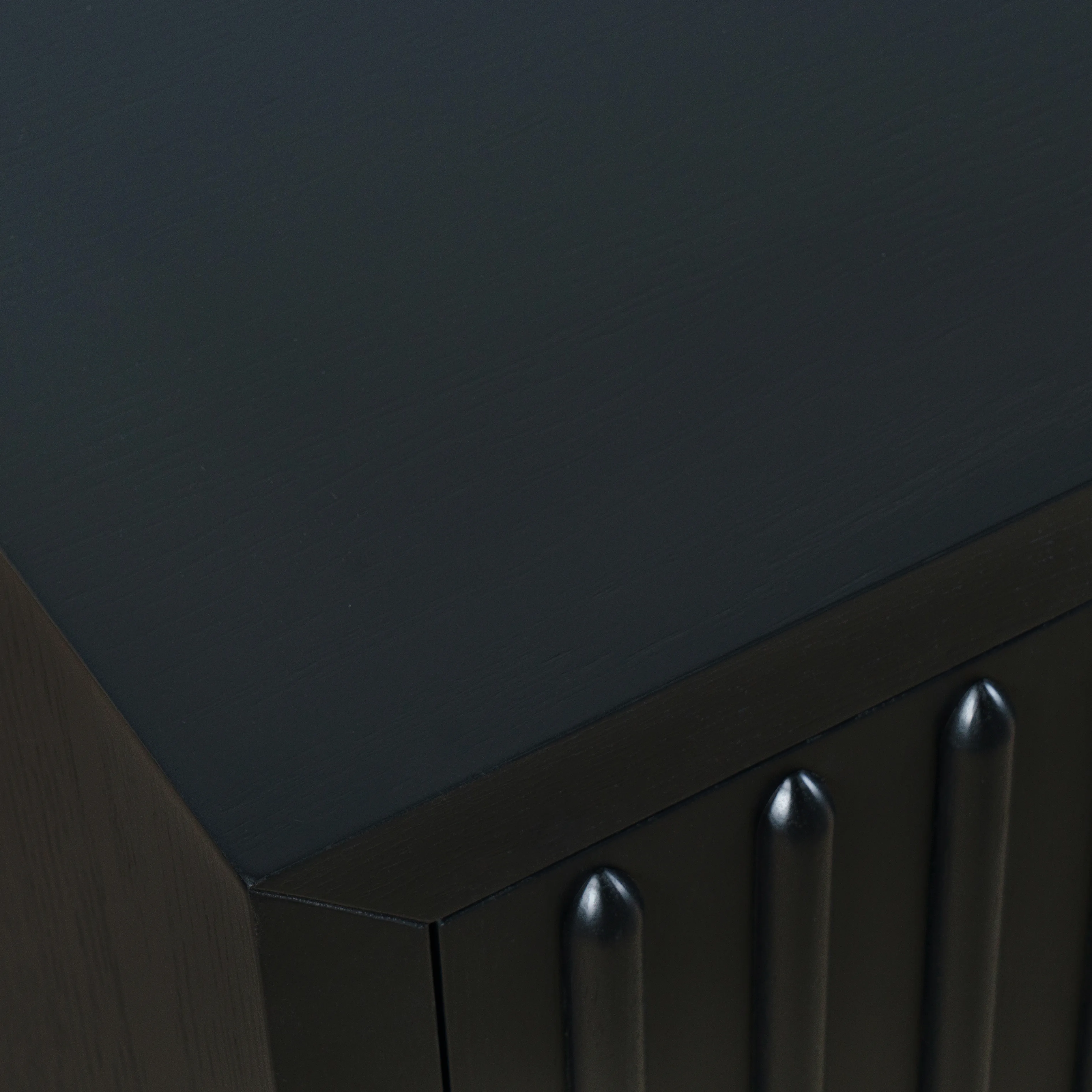 • -Four Doors and Two Storage Shelves -Unique Mid-Century Style with Fluted Solid Wood Accents -Perfect for Hallway
